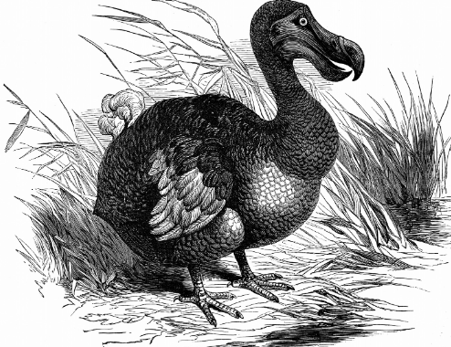 The dodo (Raphus cucullatus), a member of the pigeon family, lived on the island of Mauritius and became extinct by the late 17th century (1662).