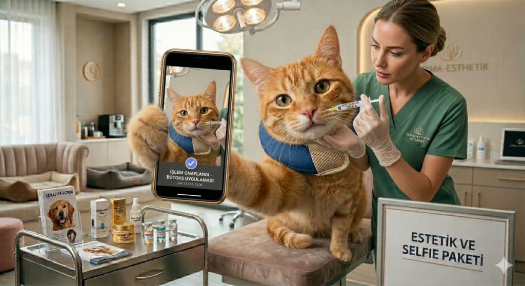 Şekil 4: Kedilere Botulinum Tedavisi Uygulanması. Enes Bilgiçer Tarafından Yapay Zeka ile oluşturulmuştur.